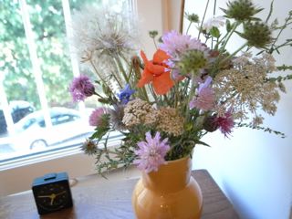 ヤロウ、レースフラワー、スカビオサ、ルリタマアザミ、バーバスカムなど、
