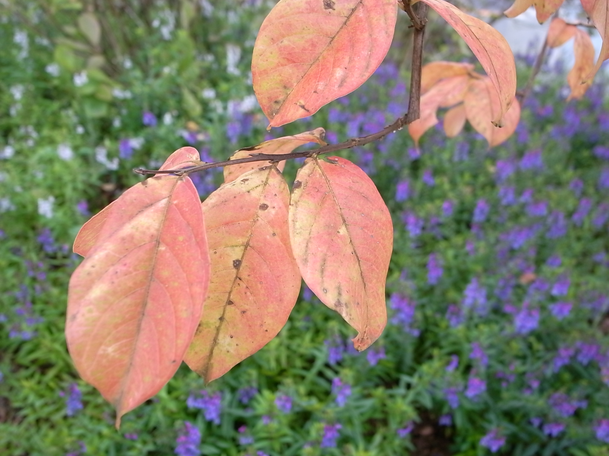 これは、サルスベリの紅葉した葉とアンゲロニア。