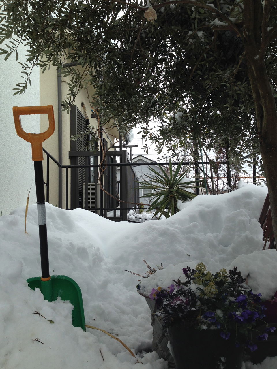 もう、雪の話題はやめたいところですよね。しかし、朝に夕に雪にかかわる問題に見舞われているので、どうしても雪の話題冬の話題となってしまいます。手探りで埋まってしまった寄せ植えを発掘しました。