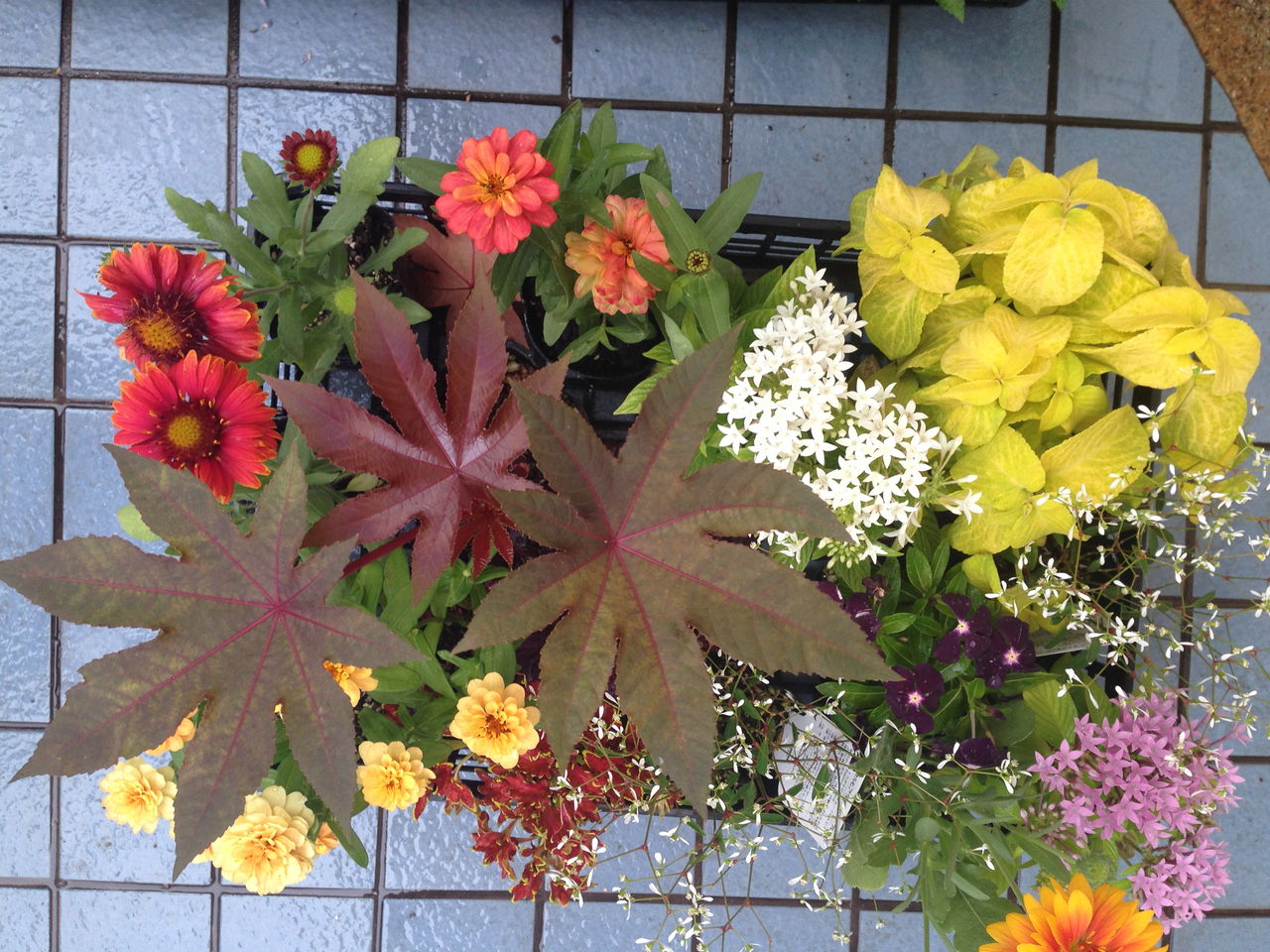 (先日、名古屋ハウジングセンター春日井会場で、寄せ植え材料。欧州建材さんがお持ちだった苗を撰ばせていただきました。これは、たまたま写真を撮ったほうで、ほかにも会場では、ご用意いただいたのに、写真が撮れてなくてスミマセン!)