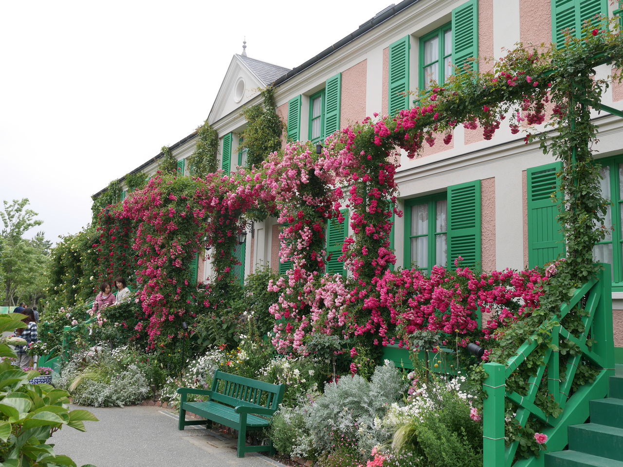 モネの庭。フランスを思い出します。って、行ったことのあるひとは、みんなそう思うでしょうね。見事に昔からの庭のようです。ただ、この日は風が強くて池に波。空気の色が日本の梅雨空で残念。空の反射が綺麗だったら、モネの絵のようになるでしょうね。数日前、かなり暑かったせいか、睡蓮の花もちょうど咲いています。