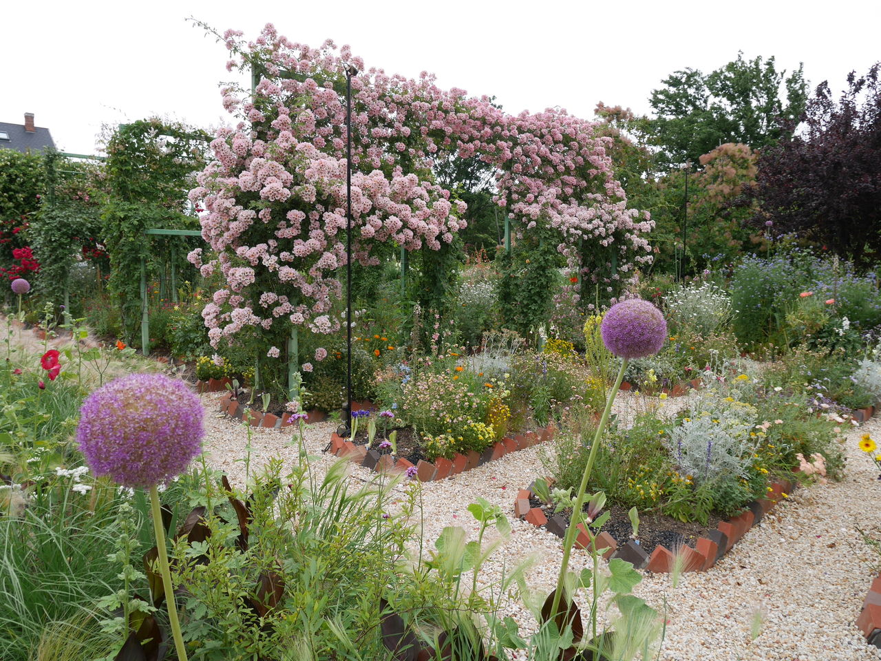 ツルバラが構造を覆い大きく育っています。時間をかけて作った庭はいいものですね。