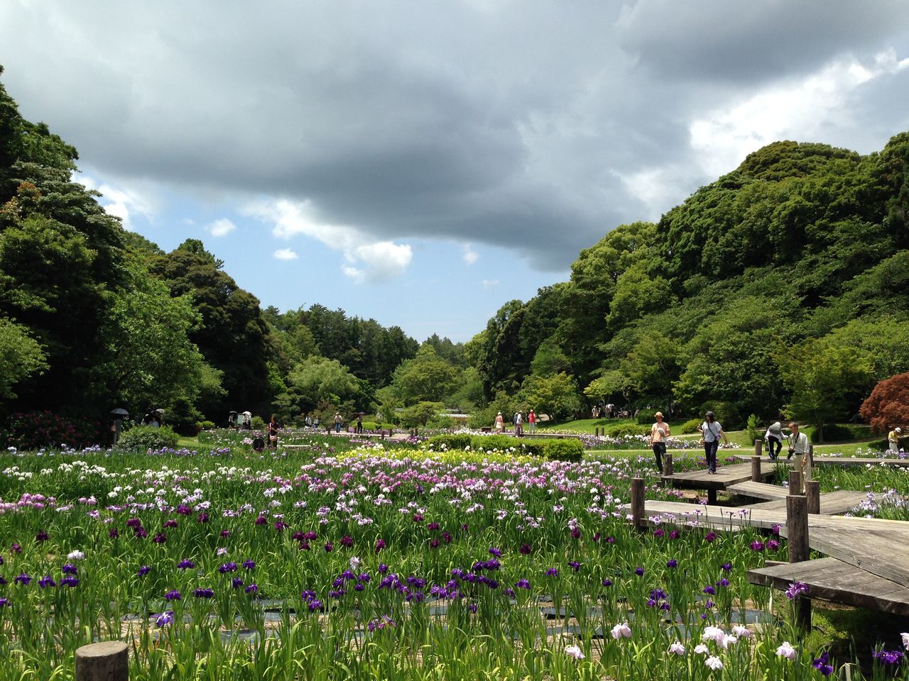 さて、こちらは、フラワーパークの花菖蒲園。アイリスは、茎の形と花のバランスが本当にステキ。5000株が咲く世界、花菖蒲の色彩は何百と品種が集まっても、色彩が調和するのがいいですね。モネの絵の色彩と似ている。