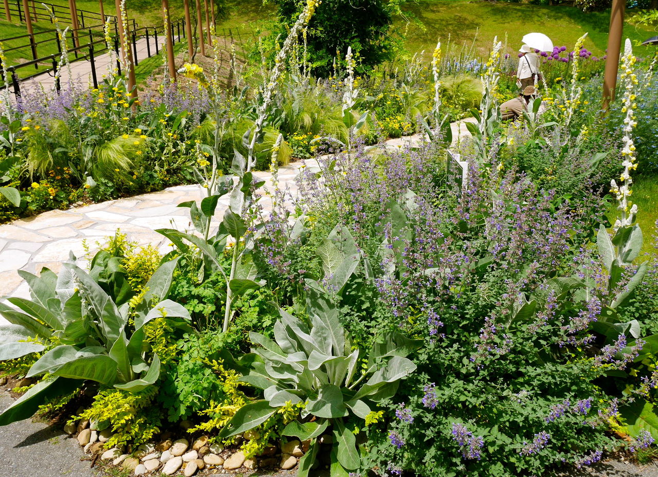 こうして見ると、細かい植物が多い箇所で写真を撮っていますが、細かい植物ばかりだとコンポジションがはっきりしなくなるので、庭のストラクチャー・プランツ(構造のしっかりした植物、形のはっきりした植物)が、もっといろいろあると良いとは、自分が庭をデザインする時に、しばしば思うことです。