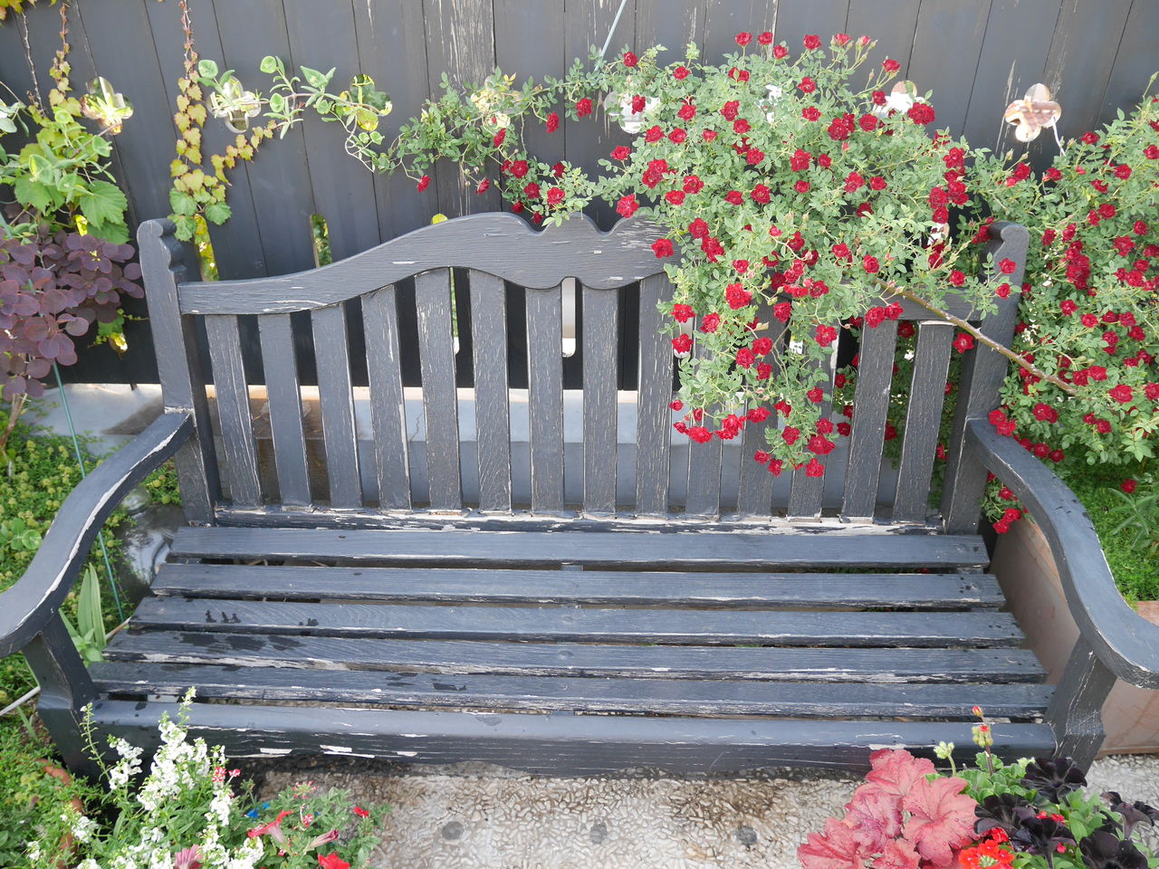 あまり綺麗な写真ではありませんが、実家の母(90歳)が、東京豊島区の住宅密集地で花を育てております。ポンコツのショッピングカートが彼女の「花の立体ガーデン」で、それぞれの時期の、日当たりと風通しの良い個所を撰んで、母がこのカートを自宅前の私道に動かしてありまして、クスっと笑えました。アイデアおばあさんです。