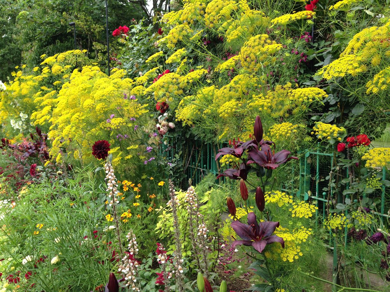 もとのモネの庭。昨日訪ねた時は、黒いユリとディルの競演。素晴しいです。