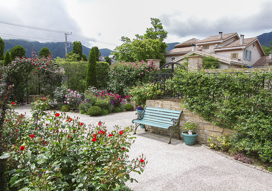 ところが二番目の写真は、私が個人的に好んでいる景色で自然な感じで季節に応じて花の咲く庭の景色。