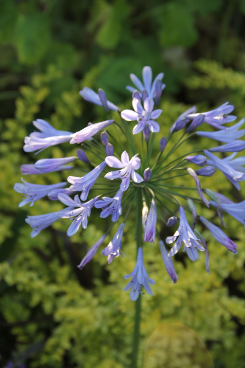 ブルーのアガパンサスと黄色のプリペットの組み合わせも好き。植物が映えるために背景のフォリッジを何色、どんなフォルムにするか、これは本当に大事な課題です。
