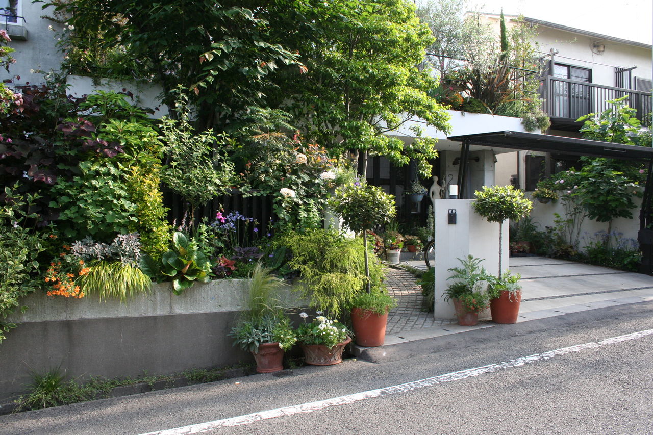 写真は初夏の眺め。凄い量の植物は、仕事で使ったものが自然と溢れ返る状態から歯止めのきかなくなる時があります。それがそのまま盛夏すぎに枯れてくることもままあり。でも、生きている植物を処分できずに悩んでしまうことが多いのです。
