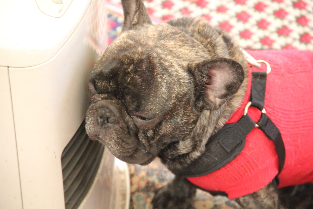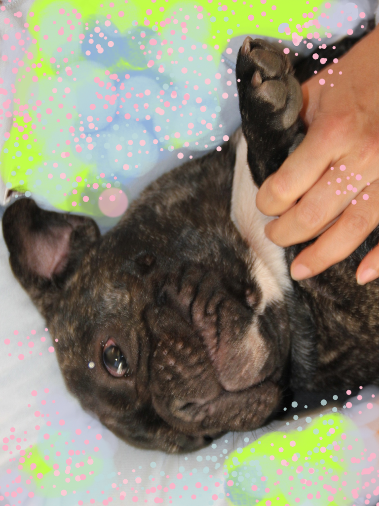 ダウンジャケットを着ている時は、少し距離が空きます。 寝てるか甘えているか、どっちかです。今日はBISES誌の撮影で、編集者のSさんにぞっこんで絡み付いて大変でしたが。私も絡み付かれて、なんどか足を踏んでしまいました。 ずっと3歳児みたいな存在感です。フレブルは、賢い面もあるけれど、定期的にかまってあげないといけないので、仕事が忙しいと、飼うのは、結構大変ですね。実感。よく、触って欲しいらしくて横でバタバタされます。そして触るとこの表情です。