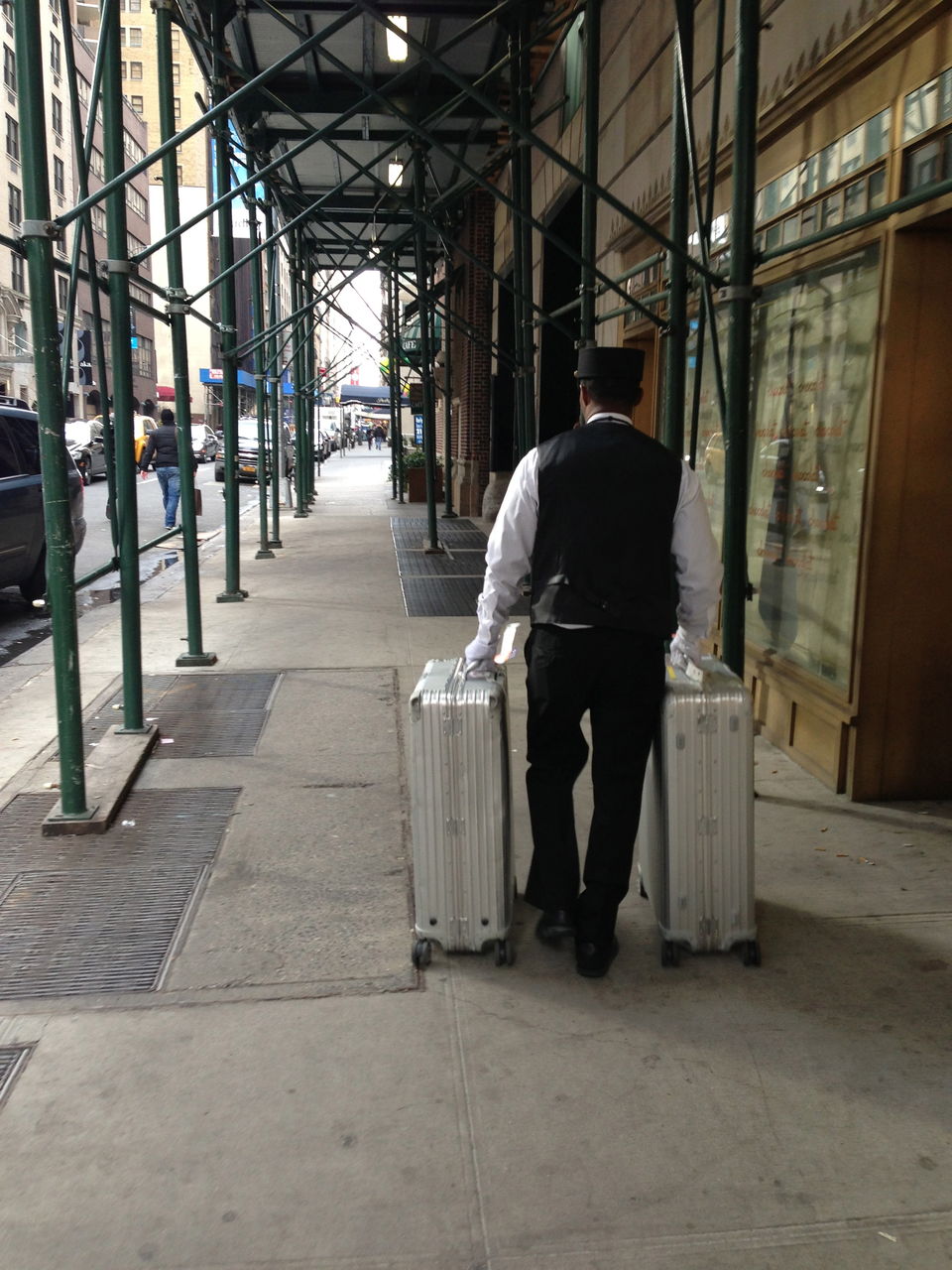 今回はプラザからAKA。どうやって引っ越しをするか、移動先は斜め目の前なので、歩いて1〜2分か?タクシーに乗るには近すぎるし、ベルボーイに向かいのホテルに運ばせるのも、なんだかなあと。でも、勿論私は荷物は持たないわよ。ホラ、同行しているヤングボーイは180センチ近い大男なので。