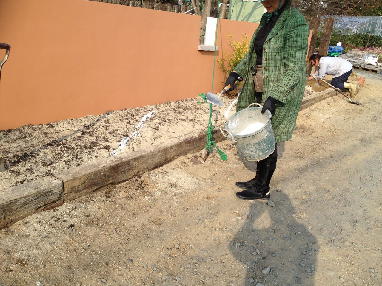 その側の壁の色、地面の色に繋がるテラコッタ色です。紫色のベロニカの咲く頃が見たいです。