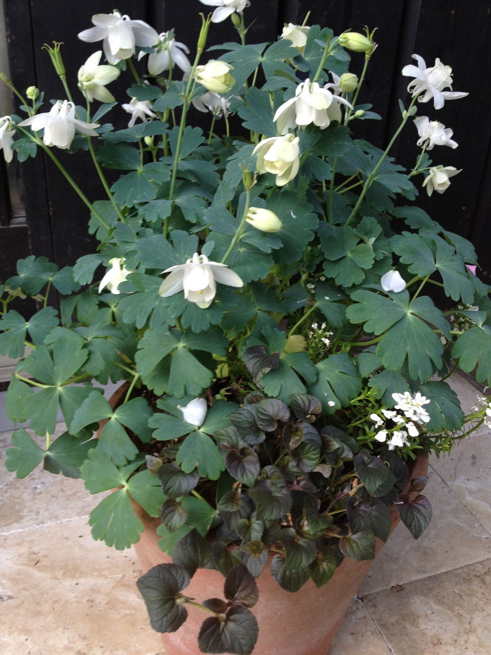 先日ご紹介したミヤマオダマキですが、この寄せ植え、ネメシアやチドリソウが終わった後、そっと植え替えて3年目、先日ご紹介している株に成長しています。