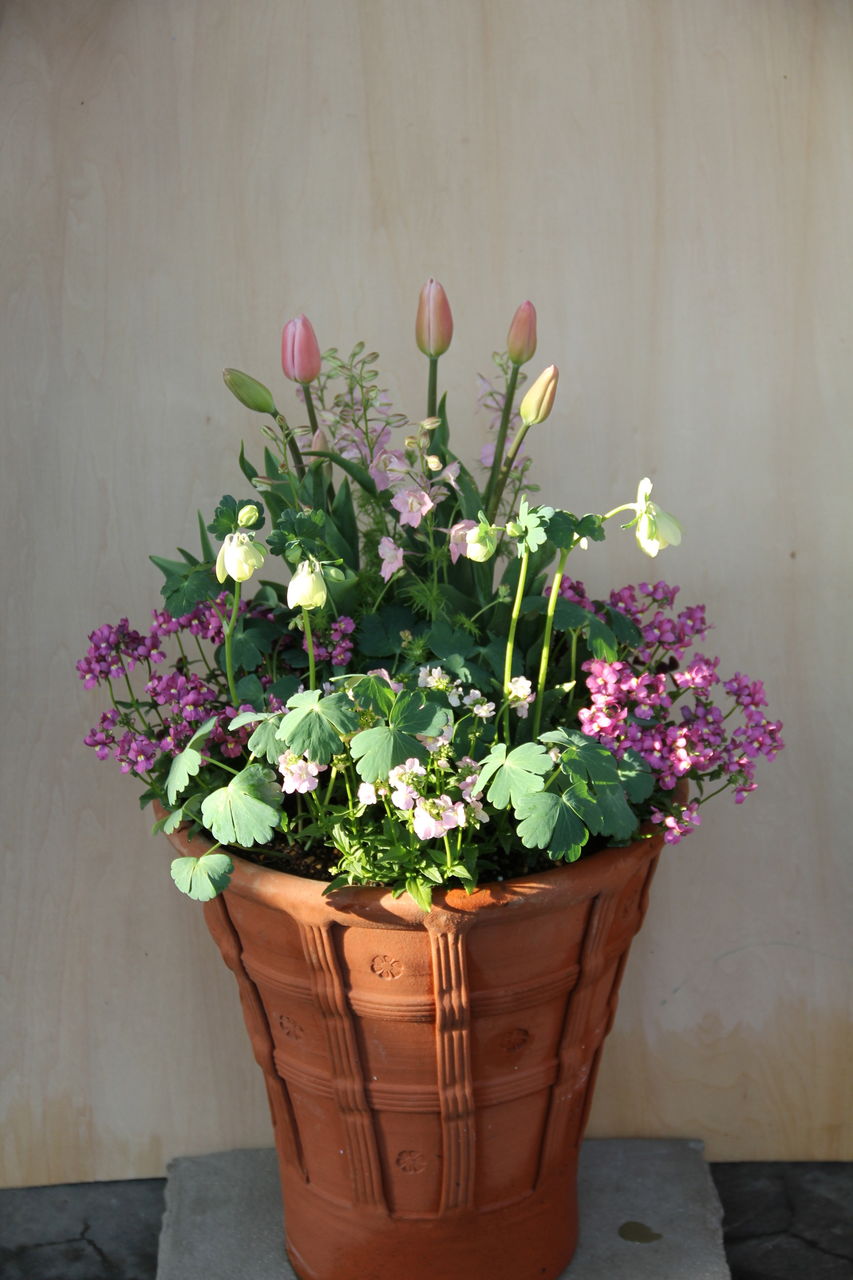 しかし、上から眺めないと、寄せ植えの全貌が見せられない。床がちょっと....。