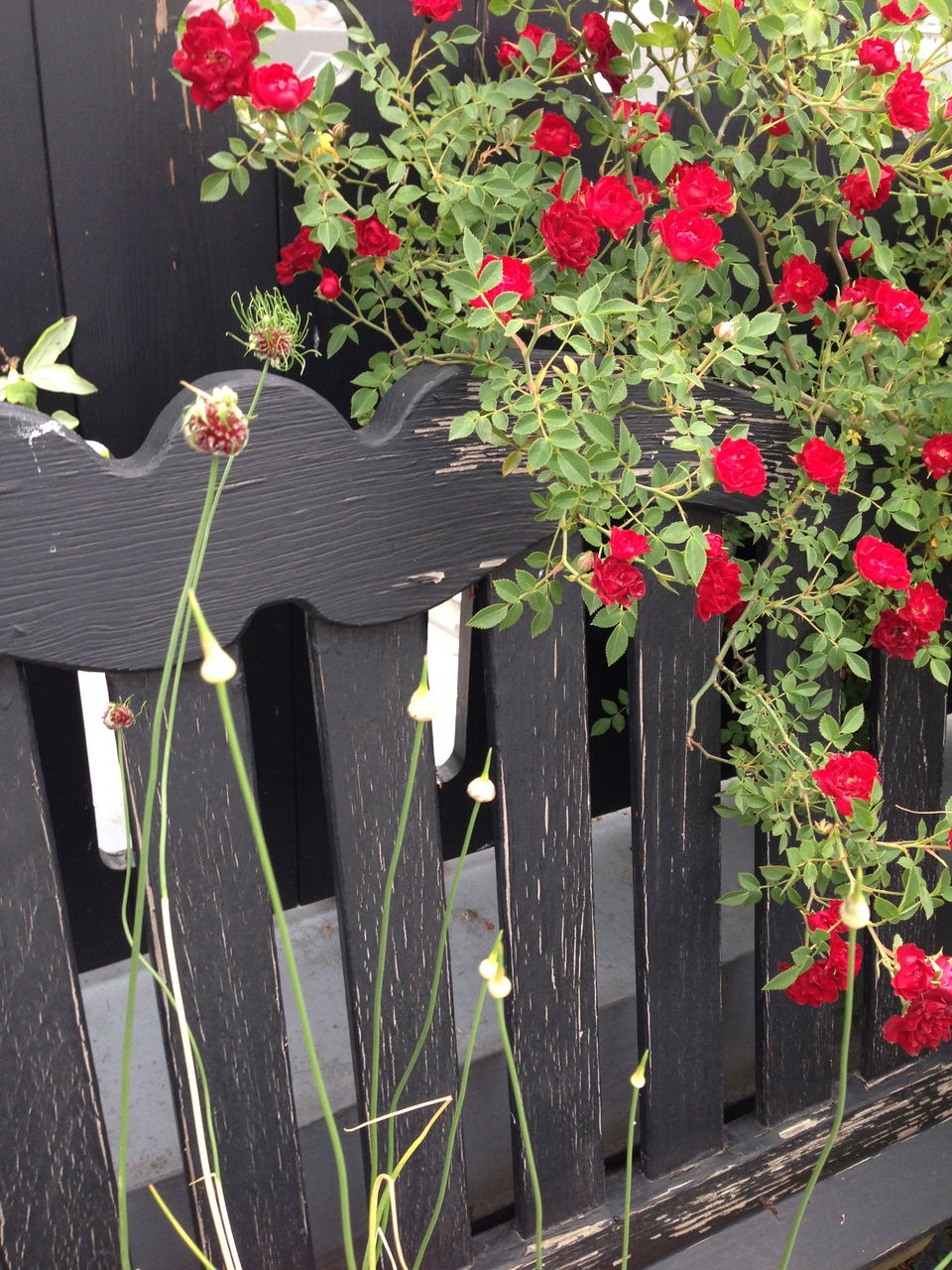 今朝、ようやく満開のバラは、’レッドカスケード’。確実園の前野さんから来た子です。これから冬まで咲き続けます。不思議な花は、アリウム’ヘアー’。ふしぎな魅力の超乾燥に強い品種です。
