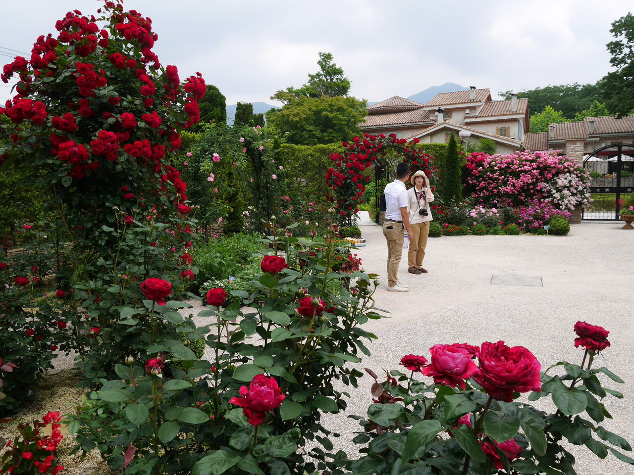 植物が威勢よく育つ場所においては、そこにいる人間も、感化されるというか。このバラたちに接してエネルギッシュに気分になりました。そして、この庭づくりに関わって5年目。ここまで、派手派手になるとは、想像もできておらず。びっくりするばかり。赤い花の庭では、派手さを抑えるために、もっと銅葉の植物の活躍も必要かと思いますが、それはこれからの課題。まずは、栽培の成功を祝う気持ちです。