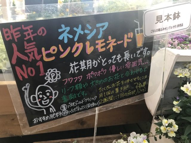 素敵な寄せ植えサンプルも一緒です。ネメシアの寄せ植え見本鉢。