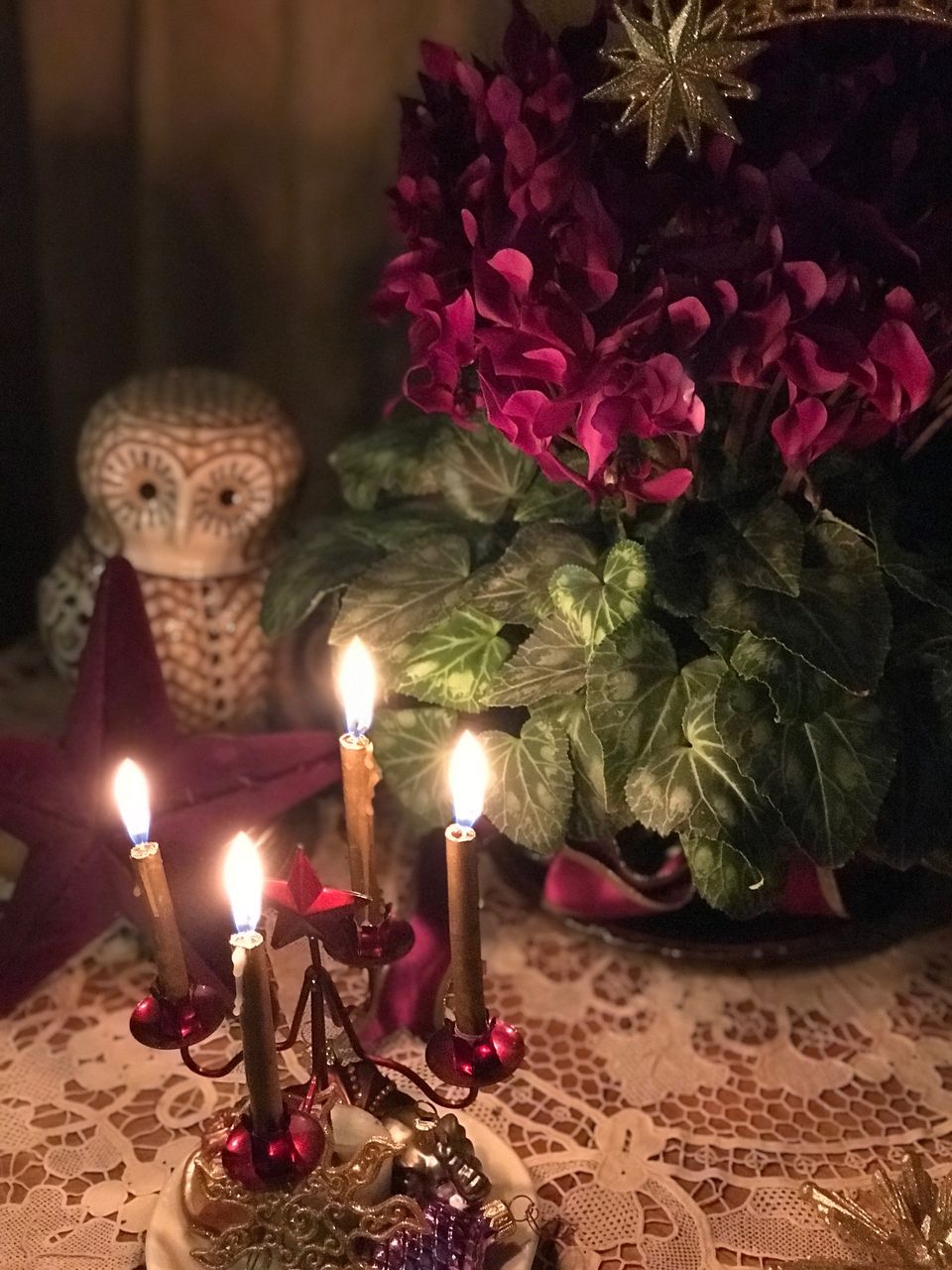 夜のロウソクの光だと、美しい青い紫が出しにくいのですが、冬のパープル。素敵です。