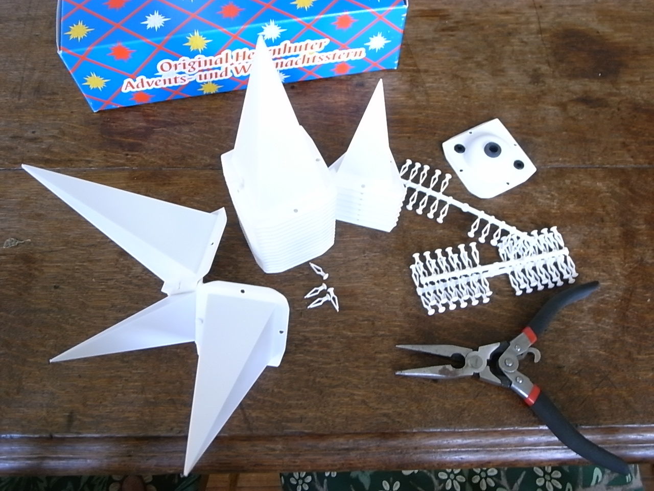 昨年末のドイツ、ニュルンベルクのクリスマスマーケットで一目惚れして買ったきた、この星の電飾(マルチポインテッドスター、ヘルンフッター飾り)。買ってきたはいいけれど、説明書もなければ、電力ワット数も違う国の、こんなものを私の電気工作知識(小学校で習ったのみ)でできるかなと思ったのですが、これが、できました! 電気工作は子どもの夏休みの工作で余った電球と電線を切って繋いでスイッチを手作り。
