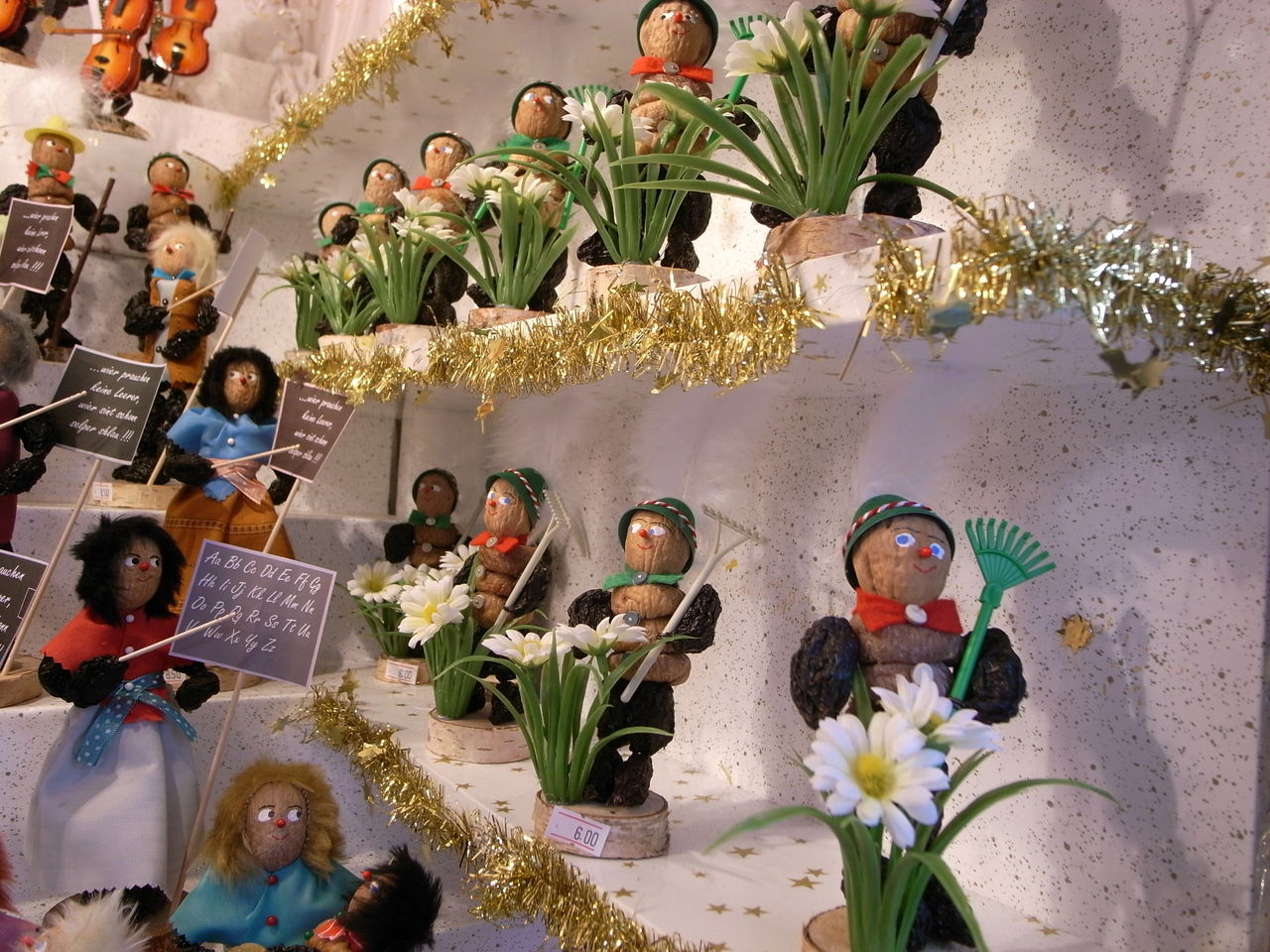 何度かご紹介している藁の飾りのほかに、ドライフルーツの人形もかわいい。