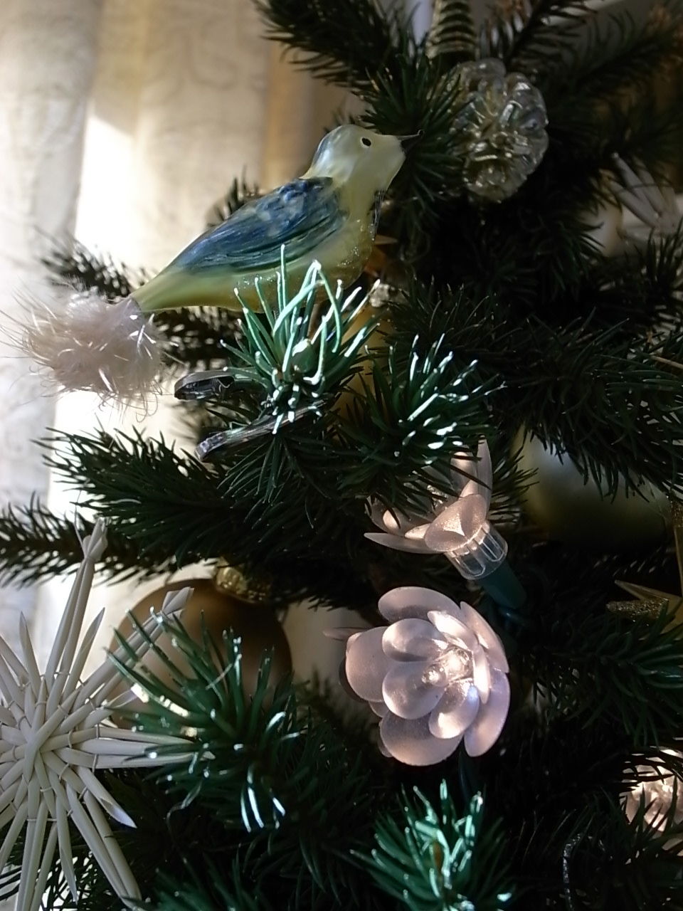 5、仕上げに、装飾をツリーにつなげるヒモ類はまっすぐ垂直に下に下がるように直すか、目立たないフロリストワイヤで付け直す。斜めに着いていると案外これが汚い。写真はまだ斜めのままのが残っている。とにかくざっくりと付け終わったら3m以上は離れてバランスをチェック。あるいはデジカメに撮ってモニターチェック。手直ししたら完成!記念写真。というわけで、この写真はまだ飾りの途中ですが。今日の大阪日帰りの翌日、明日の日曜に仕上げをしようと思っています。これを急がないのも楽しみのうちです。仕事じゃないので楽しむことが大切。最後の写真も数年前でした。なかなかここまでのエネルギーは出せない。片付けも面倒になって来たこの頃。年かな。